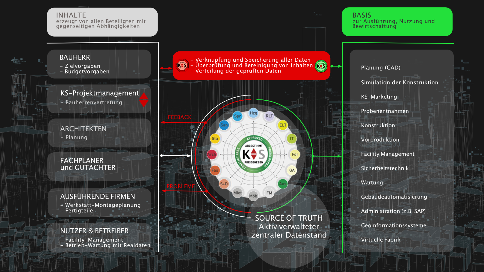 Durch das zentrale Daten- Management und -Clearing wird sichergestellt, dass alle gewerkübergreifenden Abweichungen und Konflikte systemgestützt identifiziert werden um „Claims“ zu vermeiden.